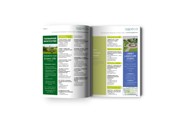«Терраса» – это электронный журнал-каталог поставщиков товаров и услуг для ландшафтного дизайна. Журнал поможет Вам выбрать ландшафтную дизайн-студию или частнопрактикующего ландшафтного дизайнера. На страницах журнала на постоянной основе публикуются тематические статьи об интересных проектах ландшафтного дизайна.